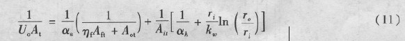 1/U0=1/ah×(r0/ri)+r0/kw×ln(r0/ri)+1/as (2)