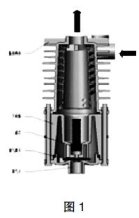 如圖(1)所示,由空壓機輸出的壓縮空氣經(jīng)進氣口進入散熱閥體與內(nèi)腔之間的螺旋通道,溫度下降,產(chǎn)生冷凝,在分離區(qū)使壓縮空氣中的水、油分離。通過桿狀濾芯,進入排放通道。打開排氣膜片,油水被收集在集液腔。