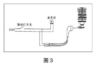 如圖3所示,踩下剎車踏板,制動燈開關(guān)關(guān)閉,剎車燈亮,同時電控不銹鋼冷凝器底部電磁閥通電,控制電控不銹鋼冷凝器排污。